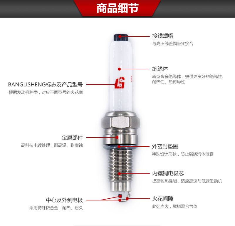 帮力省火花塞单极油气两用镍钇合金型S-DKR7AC CNG-BL88802